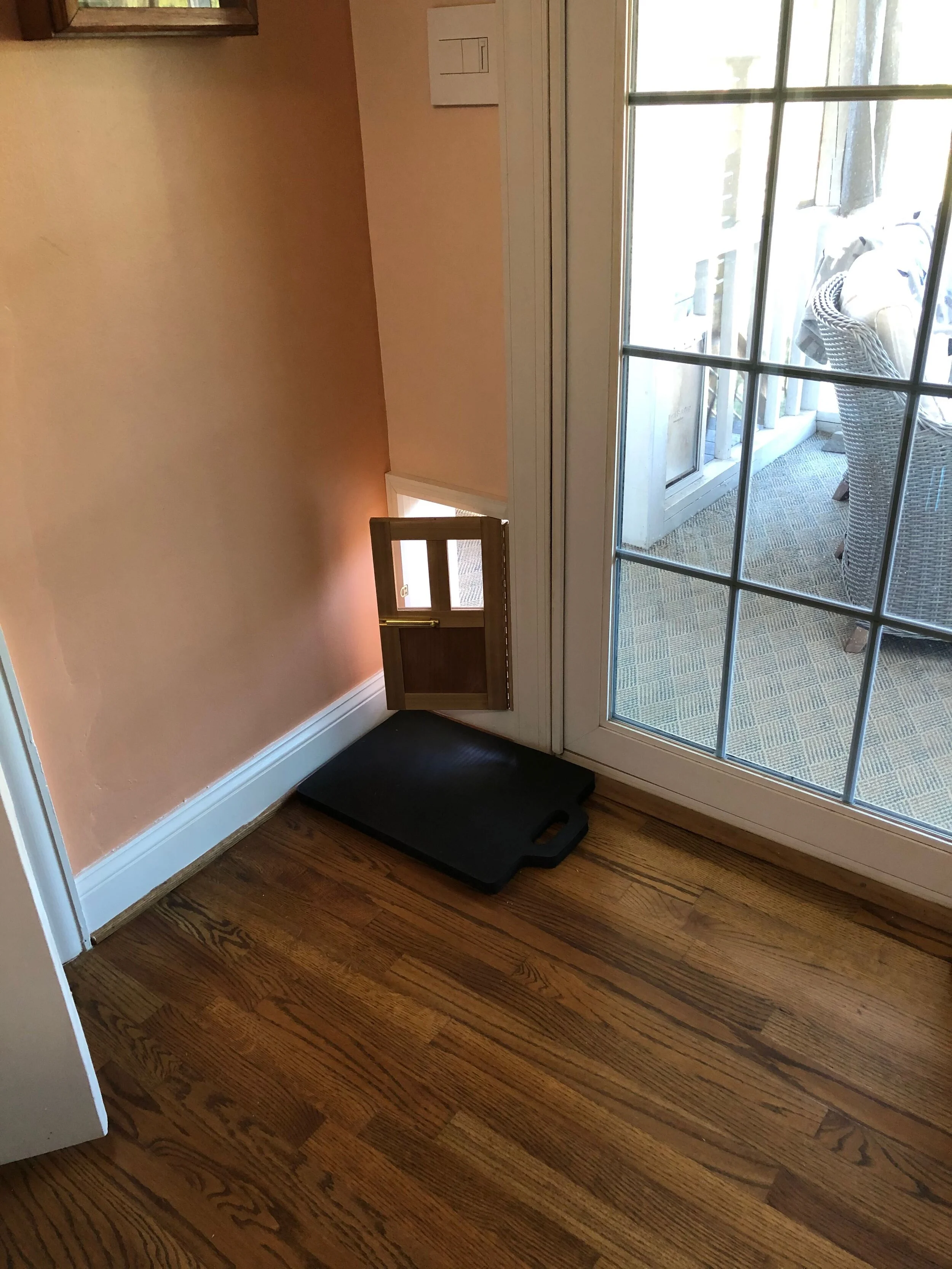 This was a recent project for some very special dogs (and their people). They wanted a pet door that was nicer than the standard plastic flap for access onto the screened in porch and added something special to the room. We chose durable Cedar framing, a solid redwood panel for the bottom to add a touch of color and cut double-paned plexiglass windows for safety, durability, and good thermal insulation. The door can be locked from the inside with a brass sliding bolt for security. Another fun project, and another happy customer…wag..wag…